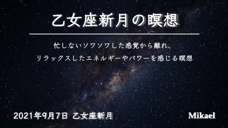 9月7日(火)午前9:52 に乙女座で新月が訪れます。 新月の時期は 静かに内省することが奨励されるものですが、今回もそういった過ごし方がおススメ。 心がザワザワしたり 意識があちこちに飛びがちな機運なので 意識的に 落ち着けるように、また自分自身の時間を持てるように配慮してみましょう。 どうしてもザワザワして落ち着かない、何かしなければならない、と感じてしまったら、こちらの瞑想ガイドを聴いてゆっ […]